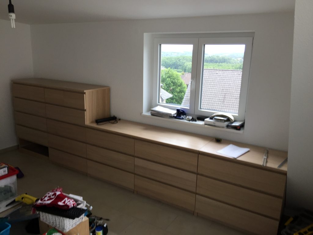 Nach Fertigstellung der 4-Meter-Kommodenwand wurde die Mulde angeliefert. Nun stand der finalen Entrümpelung nichts mehr im Weg.