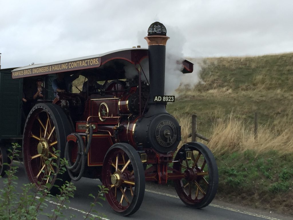Auf dem Weg dorthin wurden wir von Dampfmaschinen in Schrittgeschwindigkeit aufgehalten, die ebenfalls dorthin unterwegs waren.